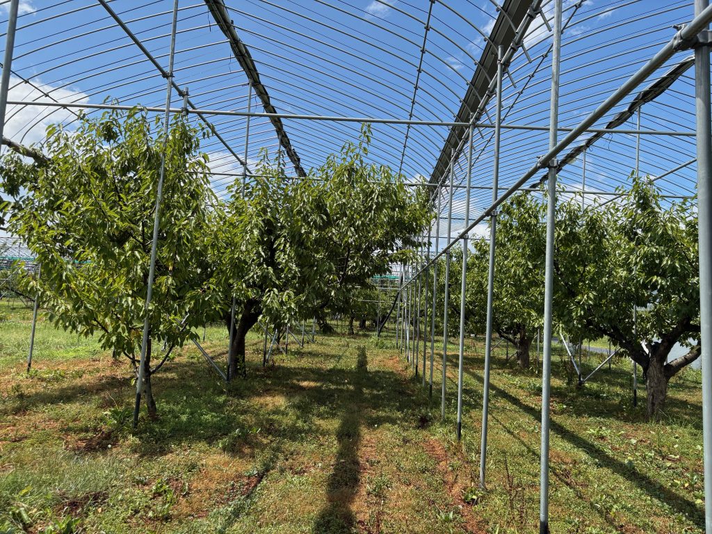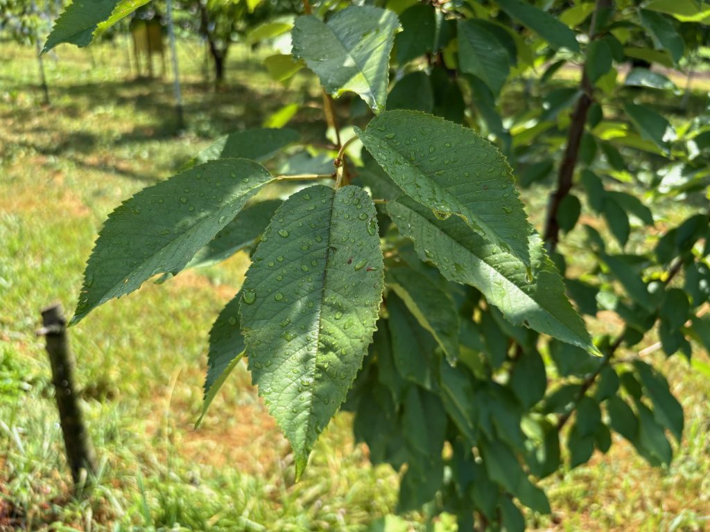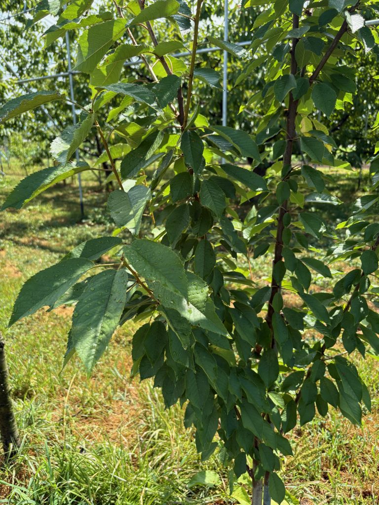 果樹畑もカラカラでサクランボの葉っぱは黄色くなっています。