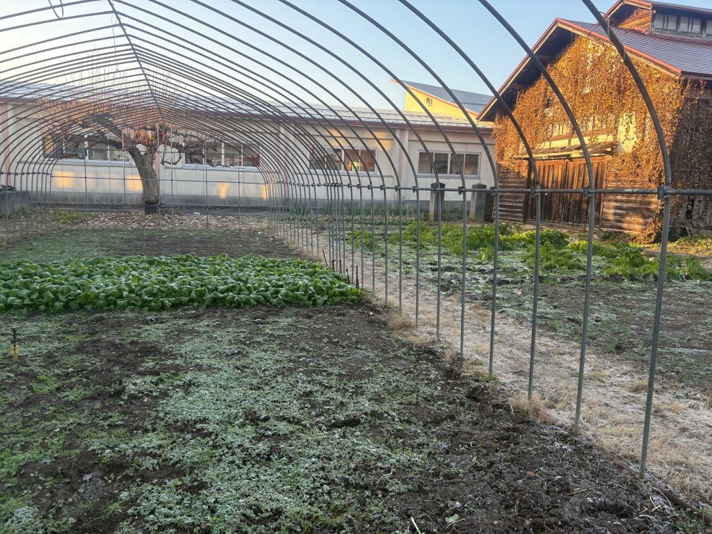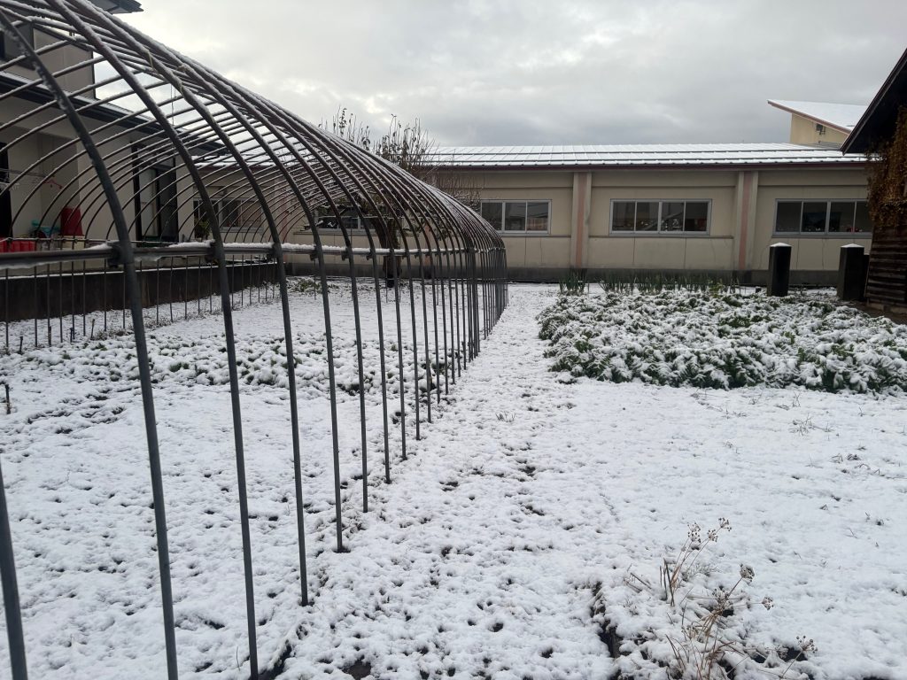 朝には畑と屋根が真っ白になりました。