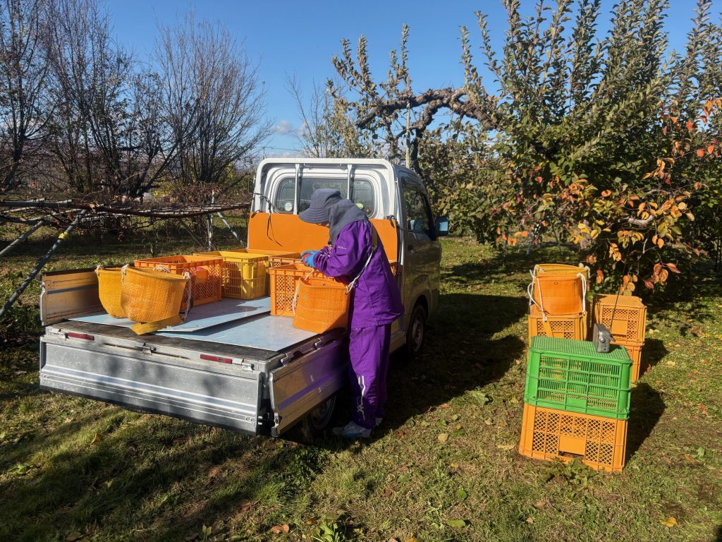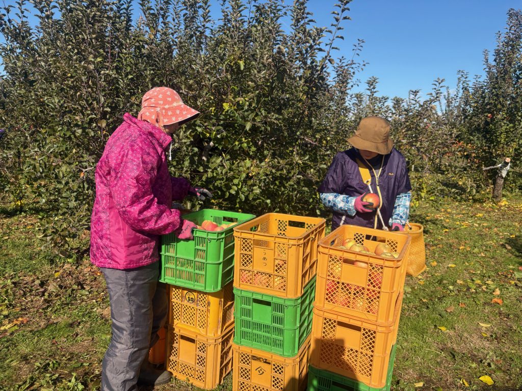 りんごの収穫をしていますが