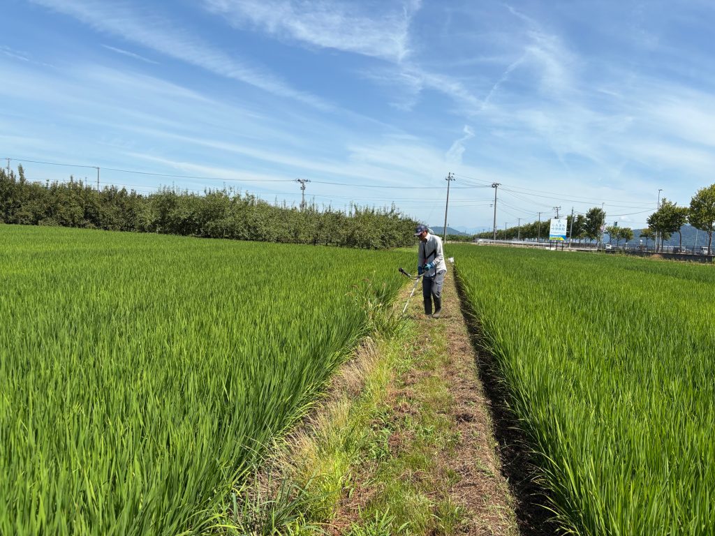 田んぼのあぜ道の草刈りをしなくてはなりません。