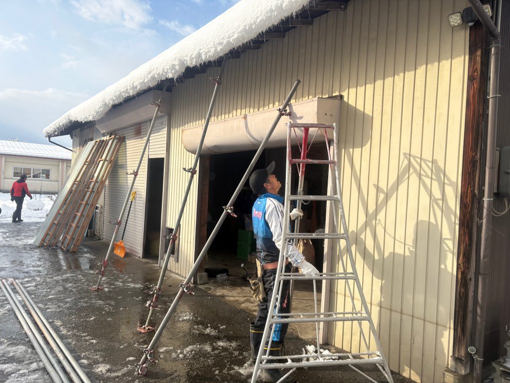 屋根の雪が今にも落ちてきそうです。