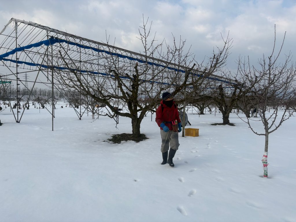 ラフランスはコツコツと寒い中、吹雪の中も剪定して