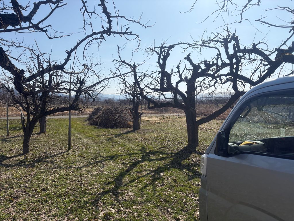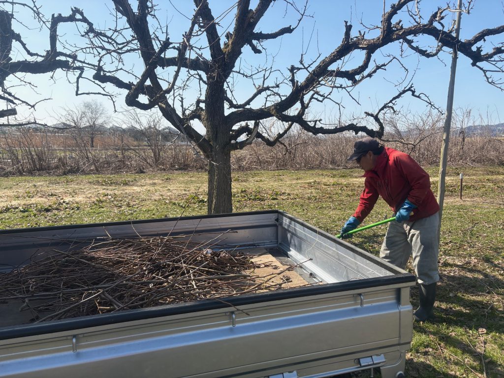 ラフランスの畑の枝拾いをしています。