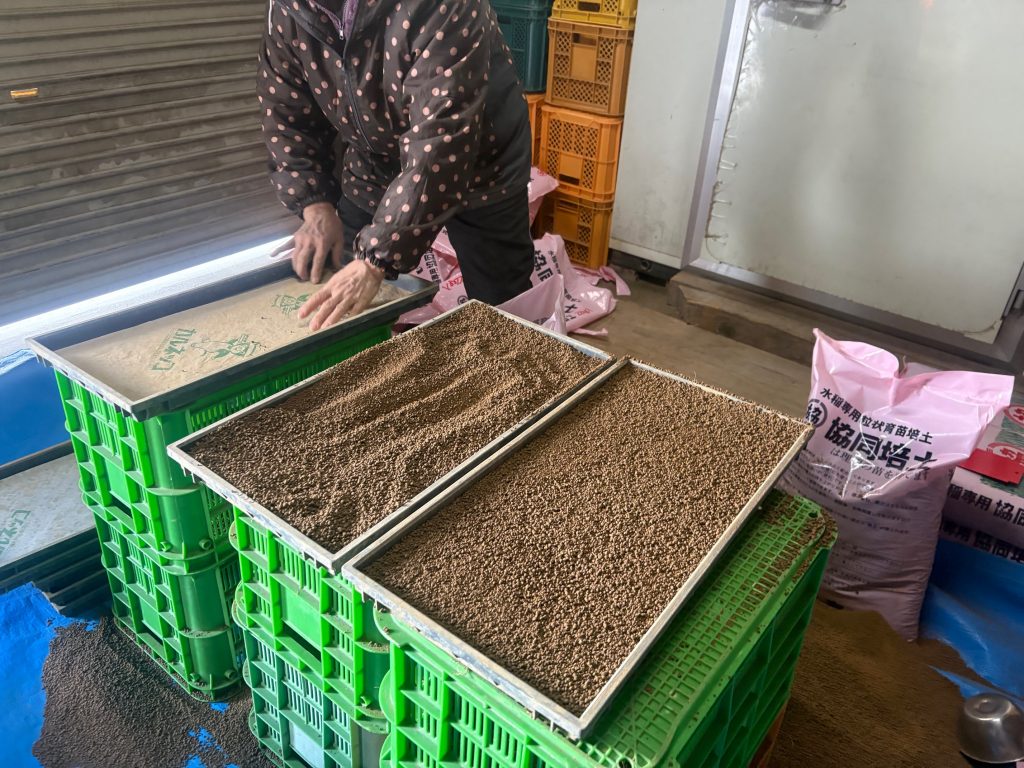 できあがった苗箱たちです。