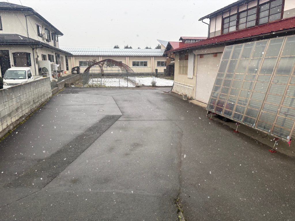 写真奥の畑にも雪がうっすら積もっています。