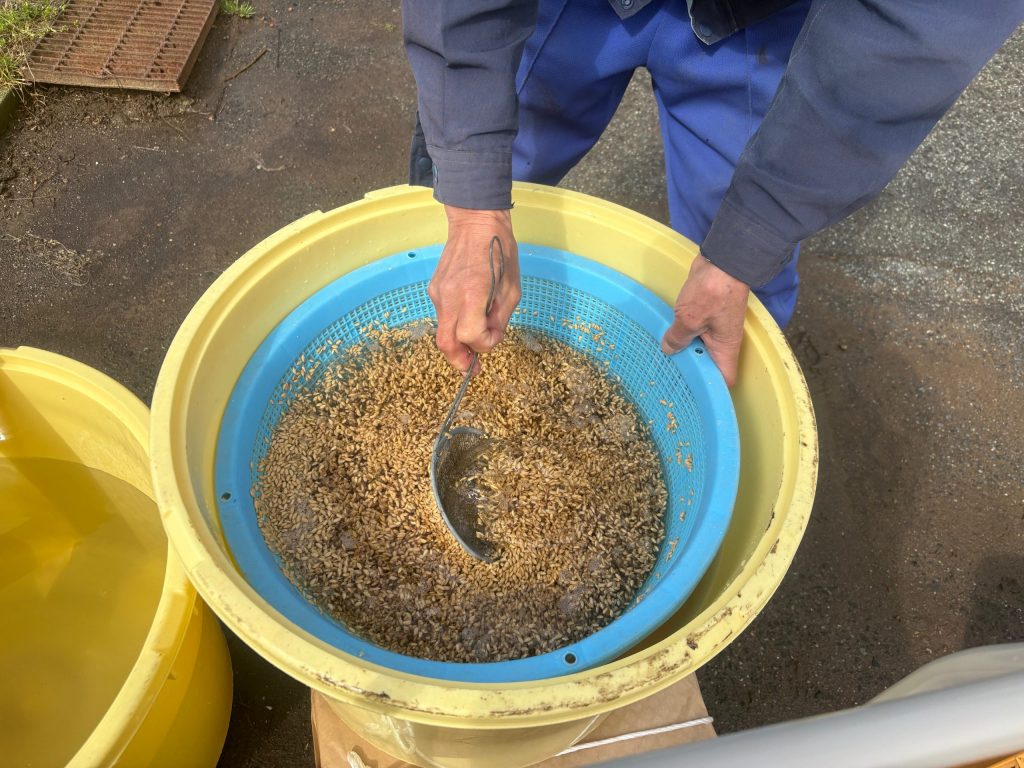 今日は稲の種もみの塩水選(えんすいせん)を行いました。