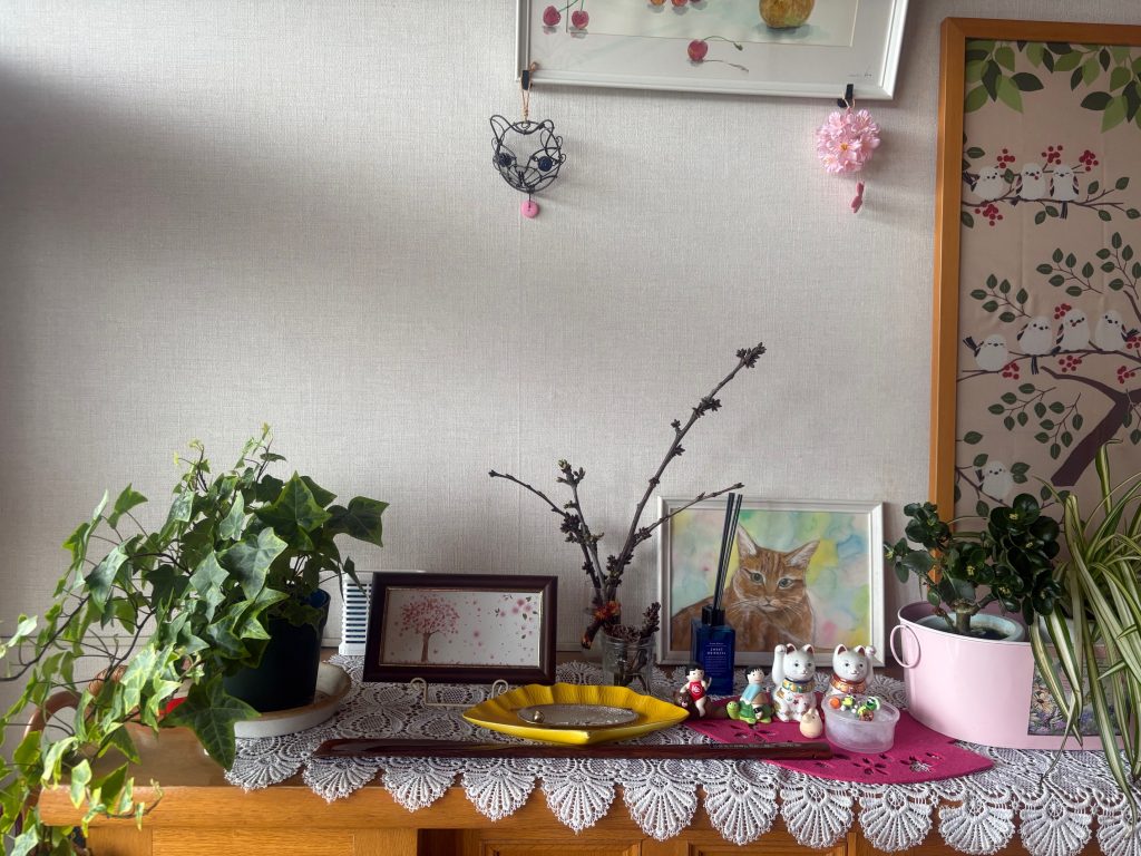 玄関の下駄箱の上は春の装いになりました。